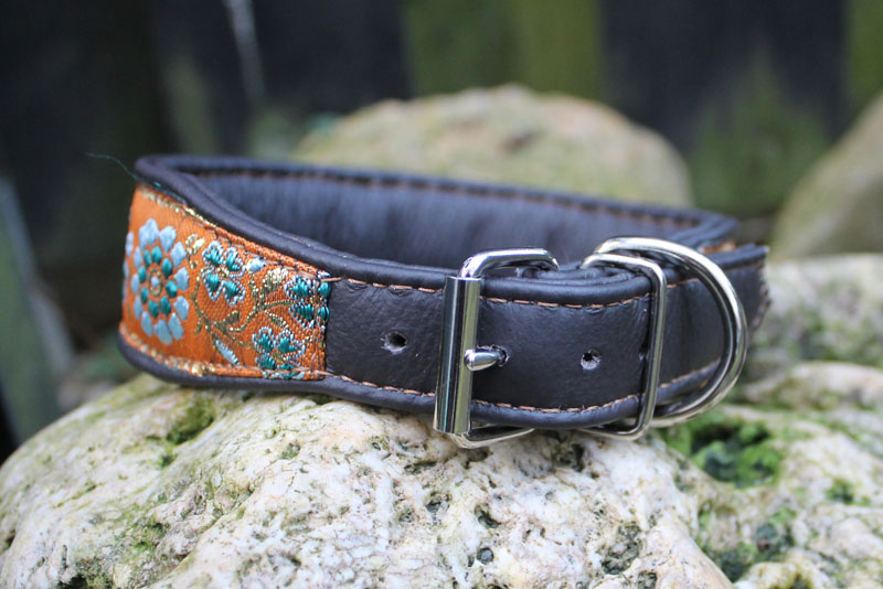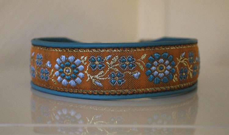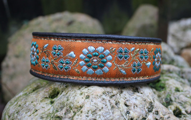 Decorated with a Jacquardtrim with floral pattern in orange, petrol, gold and lightblue
