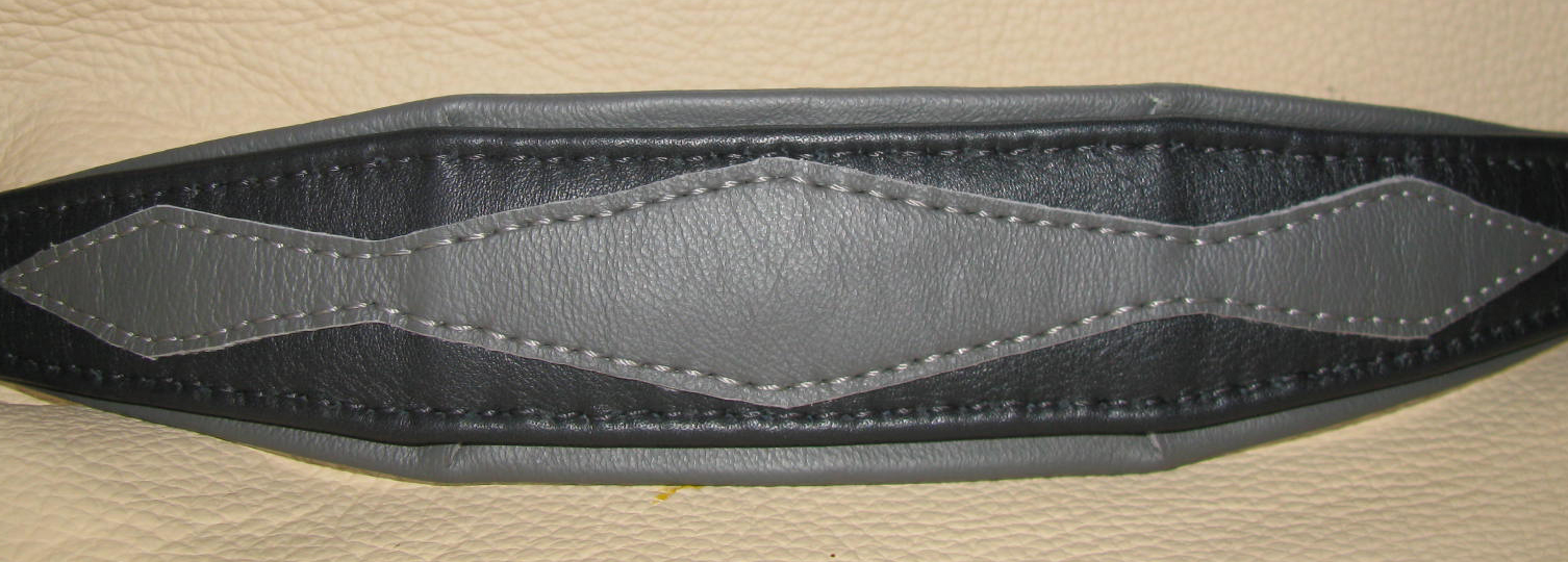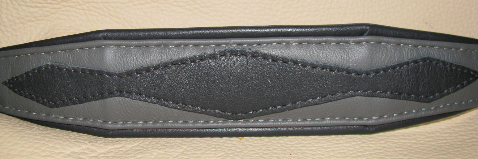 Figure 6 shows mouse grey on the exterior, black on the interior. A big black leather patch with a smaller mouse grey leather patch on top