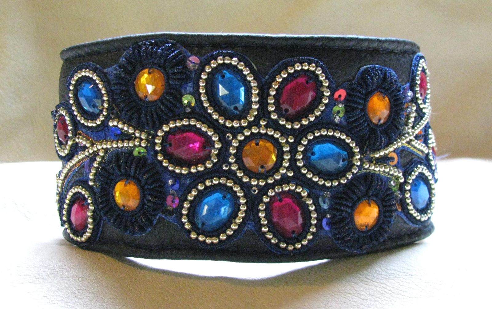 decorated with a hand embroidered patch from India