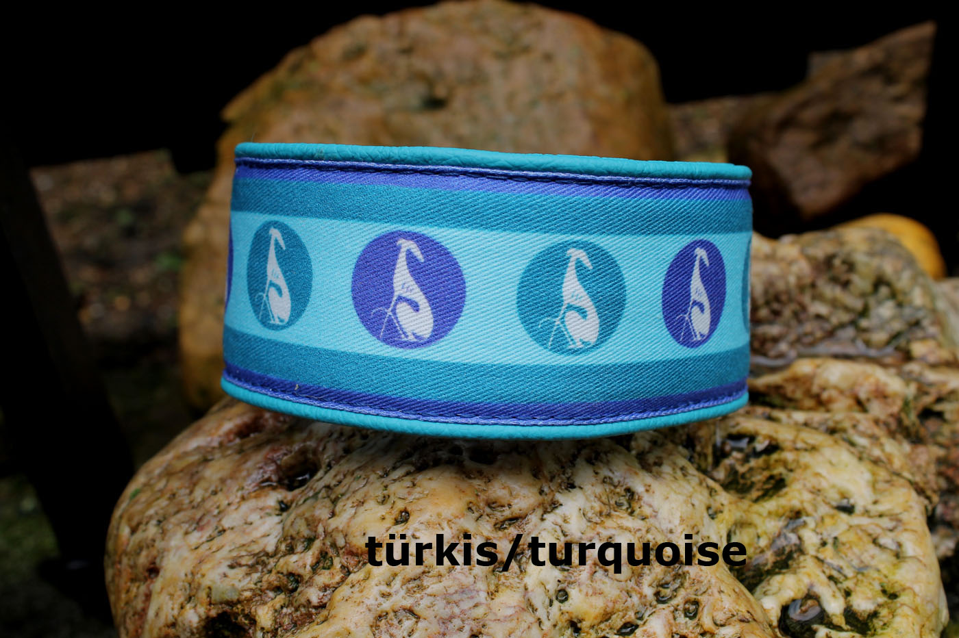 verziert mit einer Stoffborte, die mit Windhundmotiven bedruckt wurde. Das Design ist von Lobitos/arte-canino - wo nicht nur diese Muster entworfen wurden, sondern auch wunderschöne Windhundgemälde und niedliche "Filzitos" entstehen.