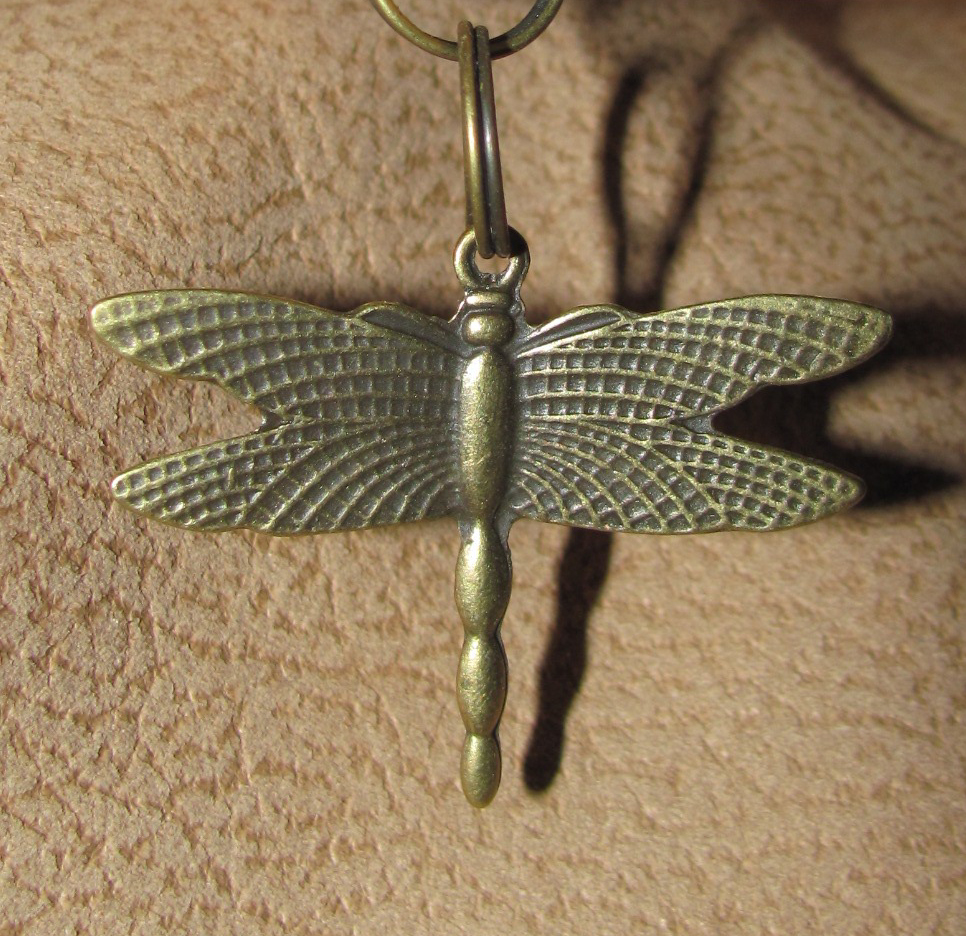 This dragonfly-pendant is made of antique gold metal.